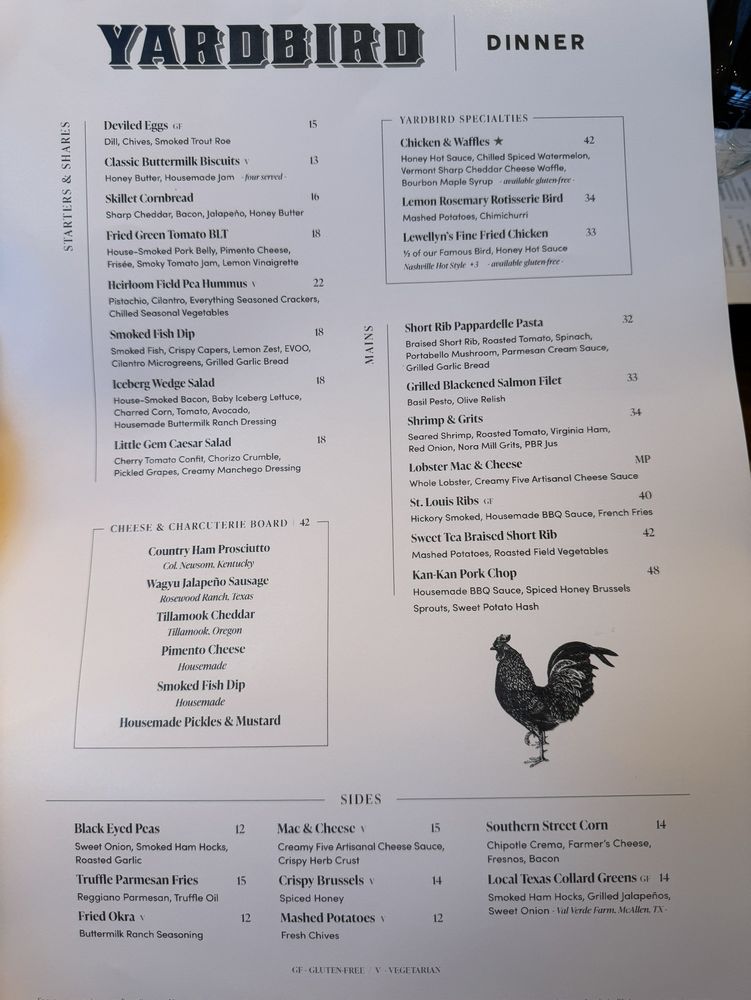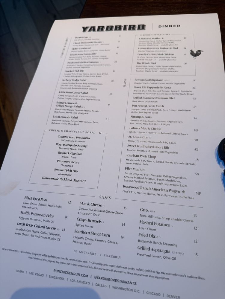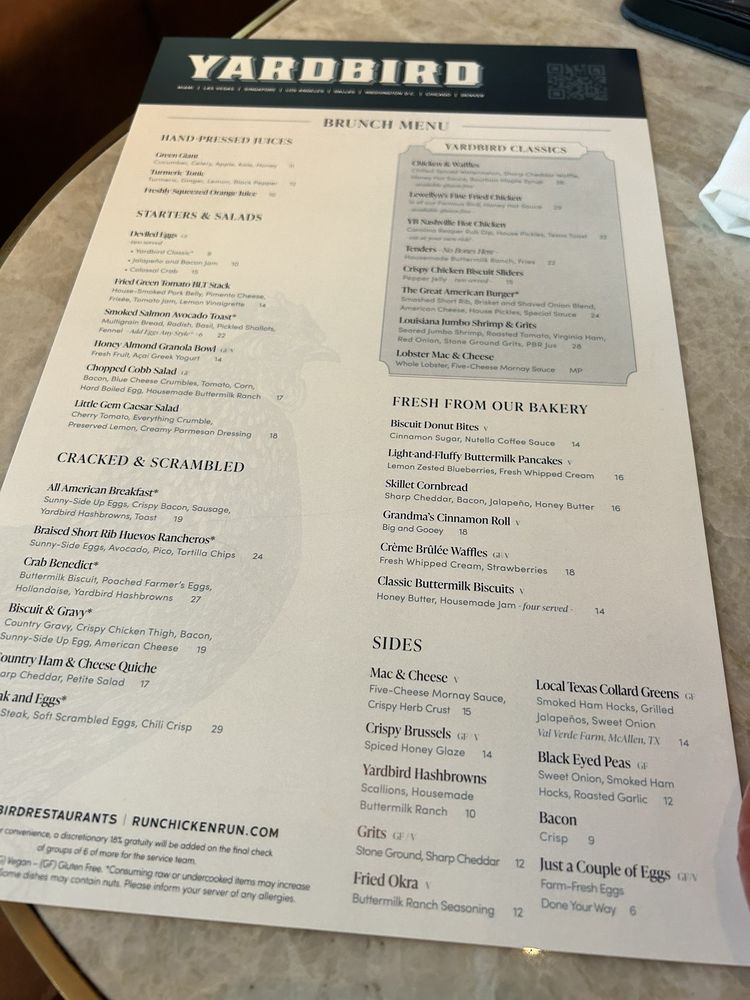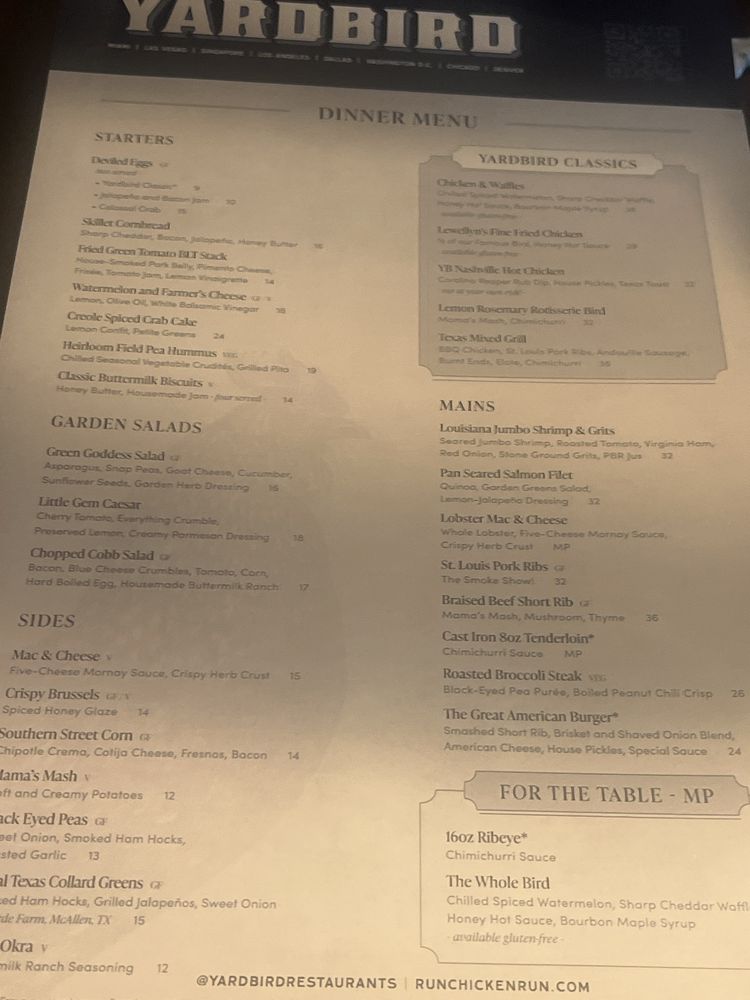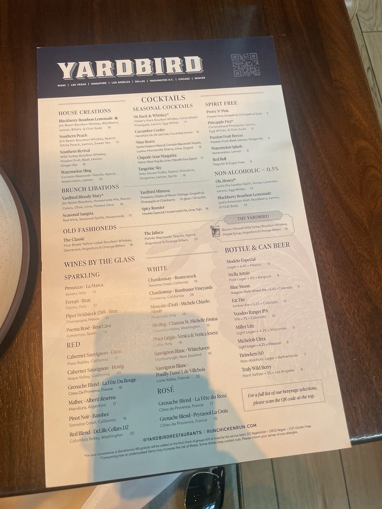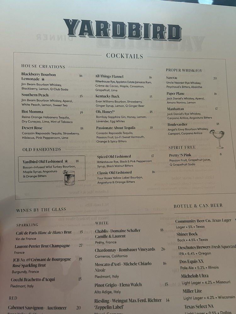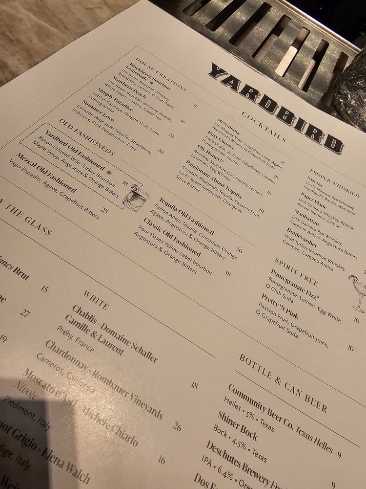 Yardbird, a Southern-New American-Cocktail Bars eatery in Dallas, offers a trendy, romantic, classy, and upscale dining experience. With various utilities like reservations, delivery, and outdoor seating, the restaurant caters to a diverse crowd. The menu boasts dishes like chicken and waffles, shrimp & grits, short ribs sliders, and more, all highly praised by customers. The ambience is spacious and clean, making it an ideal spot for private events or casual dining. The service is top-notch, with attentive waitstaff like Evan, who provide excellent recommendations. Despite the occasional long wait times, the delicious food, including favorites like deviled eggs, fried green tomatoes, and chicken & waffles, makes Yardbird a must-visit spot for those seeking authentic Southern flavors in a chic setting.